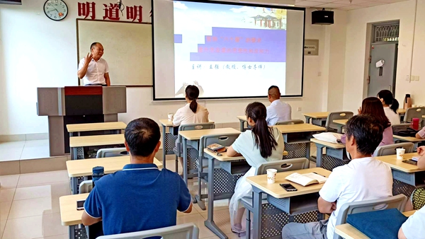 王强教授围绕“坚持‘六个要’的要求,提升思政课的思想性和亲和力”的主题,以风趣幽默的语言和深入浅出的教学方法,从课程价值层面、课程建设层面、教学方法层面阐释了思想政治理论课要坚持“八个相统一”。从构建与文本对话、与实践对话、与历史对话的开放性思政课内容体系,采用讲好“经典故事、历史故事、现实故事、区域故事、自己的故事”五个故事的方法,坚持有理想信念、有道德情操、有扎实学识、有仁爱之心“四有”好老师的标准等方面,讲述了提升思政课的思想性和亲和力的具体路径,并勉励在座教师努力成为有信仰高度、有理论深度、有知识宽度、有现实温度的思政课教师。