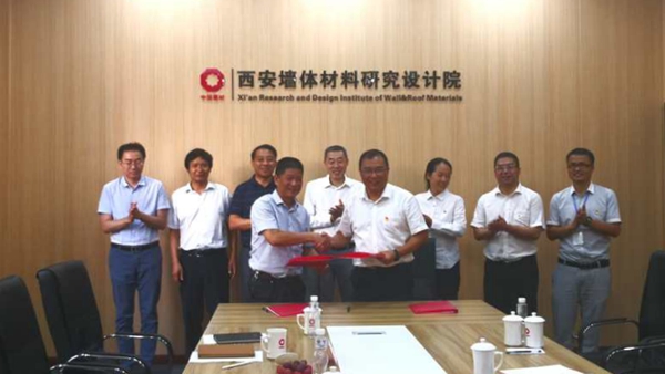 8月28日,校长范新会、副校长王新军带领科技处、化材学院负责人前往中国建材西安墙体材料研究设计院有限公司考察交流并签署战略合作协议。中国建筑材料科学研究总院党委书记、院长王益民,党委委员、副院长、中国建材西安墙体材料研究设计院院长马明亮,中国建材西安墙体材料研究设计院党委书记、常务副院长唐玉娇,副院长权宗刚参加座谈交流并出席签约仪式。范新会和马明亮代表双方签订战略合作协议。