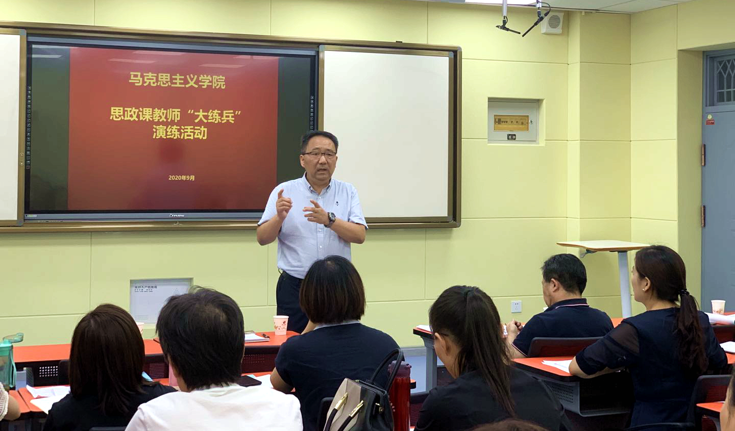 9月2日下午,校党委书记龙治刚到马克思主义学院指导思政课教师“大练兵”活动。