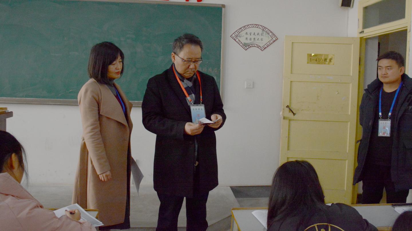为进一步加强best365考试管理,严肃考风考纪,确保2020-2021学年第一学期期末考试工作顺利进行,1月4日—5日,校党委书记龙治刚、校长范新会、党委副书记刘勇在教务处负责人的陪同下,分别深入北新街校区及丹江校区各考场检查工作,实地了解考场环境秩序、疫情防控措施落实、学生考试状态等情况,听取相关工作汇报。