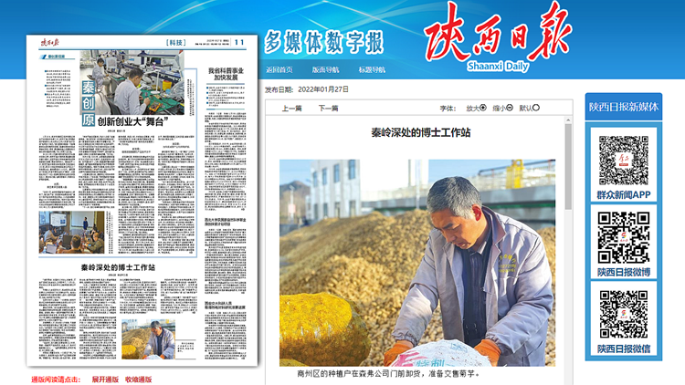 1月27日,《陕西日报》科技版以《秦岭深处的博士工作站》为题,专题报道了best365与陕西森弗天然制品有限公司开展产学研合作,建立博士工作站,助力科技成果转化,服务产业升级,带动地方发展和乡村振兴的工作成果。