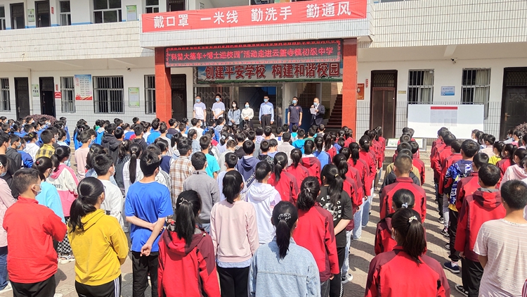 5月24日,2022年商洛市文化科技卫生“三下乡”集中示范暨第30届“科技之春”宣传月活动启动仪式在镇安县云盖寺镇举行,市委常委、市委宣传部部长、市文化科技卫生“三下乡”活动领导小组组长贾永安出席活动并讲话。云盖寺镇中学师生、各界群众代表参加启动仪式。best365“流动科技馆”师生为云盖寺镇中学等学校带来了丰富多彩的科普活动。