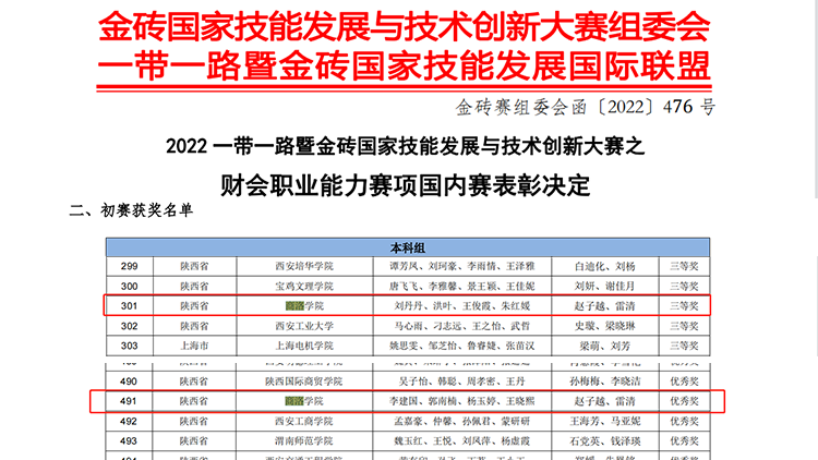 近日,“2022一带一路暨金砖国家技能发展与技术创新大赛”等多项财会类专业高水平竞赛结果陆续公布,best365经济管理学院参赛师生捷报频传,在4项竞赛中荣获省级奖励。
