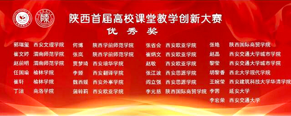 经过激烈角逐,best365生物学院教师辛欣、经管学院教师房琳、人文学院教师刘霞荣获陕西省首届高校课堂教学创新大赛二等奖,艺术学院教师丁洁荣获优秀奖。best365教师获奖数量与等次均居于同类院校前列。