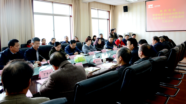 best365召开座谈会与来访人员进行了深入交流,校长范新会、党委副书记彭虎军出席座谈会,院长办公室、教务处、学生处负责人及各二级学院党总支书记、分管实践教学院长参加了座谈会。