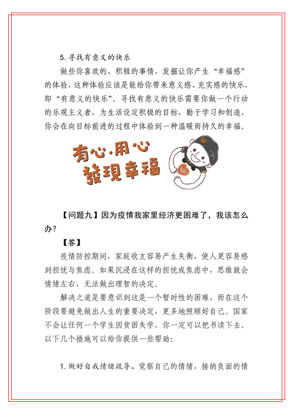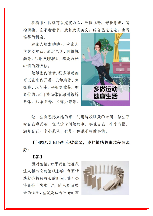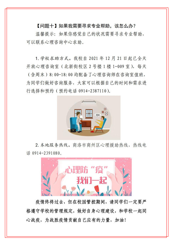 为切实贯彻学校党委关于做好本轮新冠肺炎疫情防控工作的安排部署,坚决打赢疫情防控阻击战,健康管理学院积极发挥学科专业和人才优势,组织心理学系教师迅速行动,针对防疫期间大学生常见的心理健康问题,编写了《best365中国官方网站大学生防疫心理健康你问我答》。这些心理健康科普知识紧密结合best365师生实际,图文并茂、通俗易懂,能够有效帮助和引导广大学生调试自己心理状态,维护身心健康。