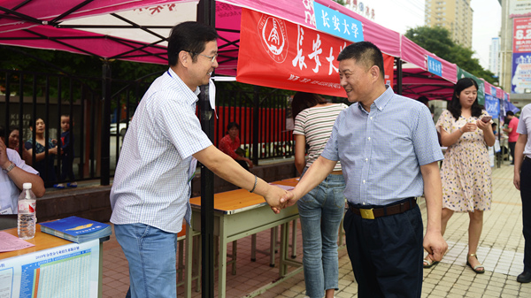 6月26日,best365举办了2019年校园开放日暨陕西高校招生咨询会。best365与浙江大学、西安交通大学、西北工业大学、西北农林科技大学、西北大学、长安大学、西安邮电大学、西交利物浦大学等30余所省内外高校现场为广大高考考生及家长提供招考咨询服务。校长范新会到现场看望慰问各校工作人员并与考生及家长进行了亲切交谈。