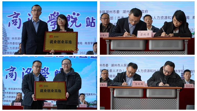 会上,电信学院、化材学院、生物学院、经管学院分别与浙江华远微电科技有限公司、久立集团股份有限公司、长兴太湖龙之梦虹峰酒店投资管理有限公司及湖州嘉亨实业有限公司签订了大学生就业创业基地建设协议。