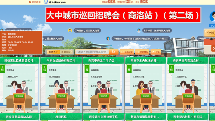本次招聘会依托猫头英云就业平台开展,吸纳了省内外246家用人单位参会,其中包括河南国控建设集团有限公司、国核宝钛锆业股份公司、宁夏建龙特钢有限公司、陕西地矿第二工程勘察院有限公司等业内知名企业以及西安城市交通技师学院、西安信息工程技师学院等师范教育类用人单位,为best365毕业生提供土木土建、师范教育、电子商务、外语外贸、学前教育、电气工程、金融会计、化学化工、生物医药等多个行业领域的有效对口岗位达6930多个。招聘会开展期间,best3651787名毕业生参会,在线参加面试926人(次),达成初步就业意向334人(次)。