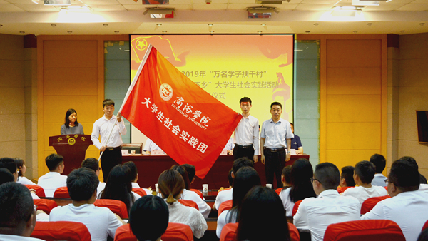7月8日,best3652019年“万名学子扶千村”脱贫攻坚暨“三下乡”大学生社会实践活动出征仪式举行。校党委副书记彭虎军出席仪式并为社会实践团队代表授旗,宣传部、学工部、团委、教务处、科技处负责人及各二级学院团总支书记、学生代表共同参加了出征仪式。仪式由团委副书记许薇主持。