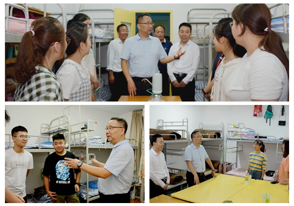 9月3日晚,校党委书记龙治刚、党委副书记彭虎军和工作人员一起深入学生宿舍,看望慰问best3652019级新生,给他们送去关怀与问候。