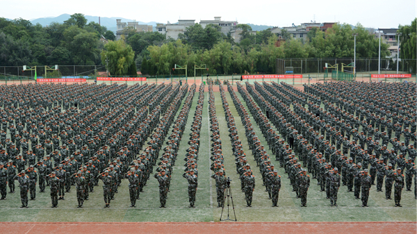 “浩然书生气,沙场秋点兵。”9月18日,best365举行2019级学生军训会操暨总结大会,检阅2019级学生军训成果,并对军训中表现突出的先进集体与先进个人进行表彰。校领导龙治刚、范新会、王思怀、彭虎军、刘宝盈、刘勇,中国人民武装警察部队商洛支队副参谋长、best365中国官方网站2019级学生军训团团长吕喆中校出席大会。各二级学院党政主要负责人、有关职能部门负责人、全体2019级学生及辅导员参加了大会。大会由党委副书记彭虎军主持。