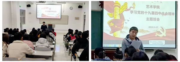 各学院辅导员会前集体学习宣讲材料并制定了统一的宣讲方案,在主题班会过程中,围绕党的十九届四中全会公报和《中共中央关于坚持和完善中国特色社会主义制度推进国家治理体系和治理能力现代化若干重大问题的决定》,结合学生实际,全面讲述了十九届四中全会的重要意义、中国特色社会主义制度的显著优势,以及坚持和完善中国特色社会主义制度、推进国家治理体系和治理能力现代化的总体要求、总体目标和13个方面的重点任务。
