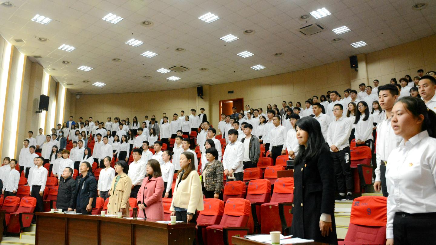 为进一步推动习近平新时代中国特色社会主义思想深入人心,加强best365学生干部队伍建设,10月14日,best365举行“青马班”第八期培训班结业暨第九期培训班开班典礼。校党委委员、组织部部长郭瑾,宣传部、学生处、校团委、马克思主义学院党总支负责人,二级学院团总支书记,第九期“青马班”部分指导教师,第八期、第九期全体学员共同参加典礼。