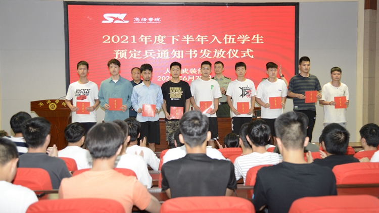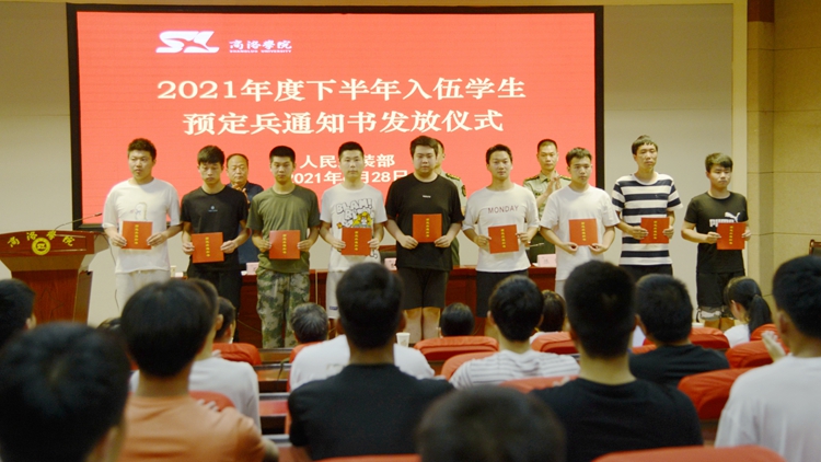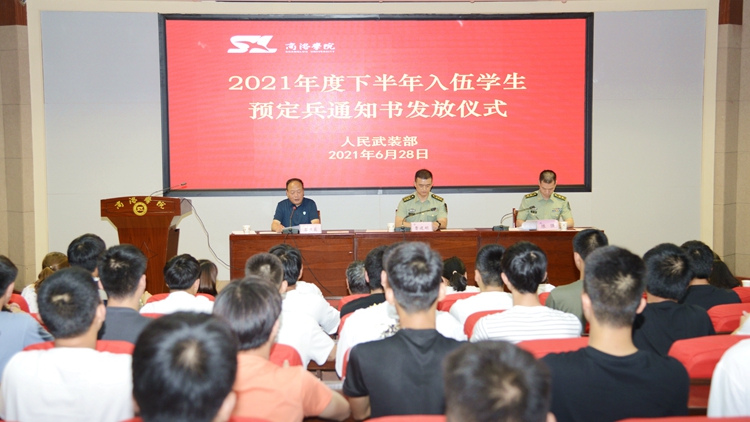 6月28日,best365举办了2021年度下半年入伍学生预定兵通知书发放仪式,商州区武装部部长曹建明上校、副部长陈强中校出席会议。best365学生处处长石启英、各二级学院学工办主任及51名预定新兵参加了会议。会议由石启英主持。