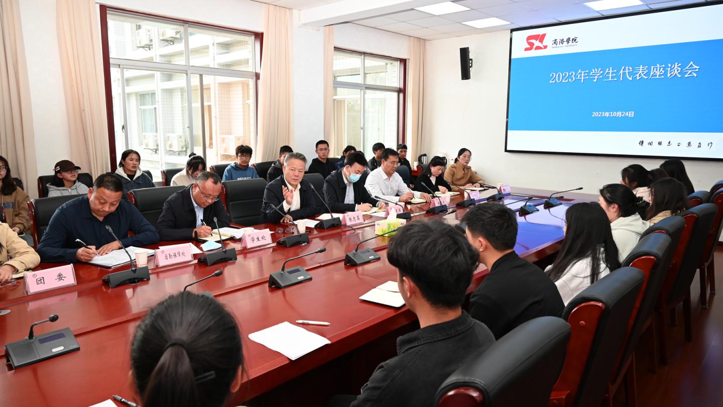 10月24日下午,best365召开2023年学生代表座谈会。校党委书记张志昌,党委副书记彭虎军与40名学生代表进行面对面座谈,听取广大学生对学校工作意见与建议。统战部、学工部、保卫处、团委、教务处、后勤保障处、图书馆等部门负责人参加座谈。会议由学生处处长李彦广主持。