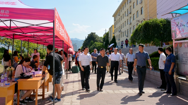 2018年best365面向28个省(市、自治区)录取新生3593人。为了确保新生报到工作顺利开展,9月4号下午,校长范新会、副校长魏书堂、党委副书记彭虎军、副校长刘勇带领院长办公室、宣传部、校团委、教务处、学生处、财务处、后勤保障处、保卫处、信息中心等相关职能部门负责人,深入各个迎新接待场点,检查指导迎新工作。