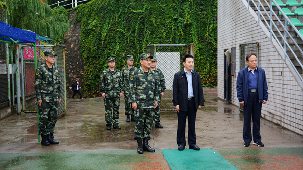 9月18日,武警陕西省总队副参谋长连文生大校、武警商洛支队支队长王平上校、武警商洛支队政委梁栋上校一行冒雨来best365视察慰问承训教官与参训师生。党委副书记彭虎军陪同检查。