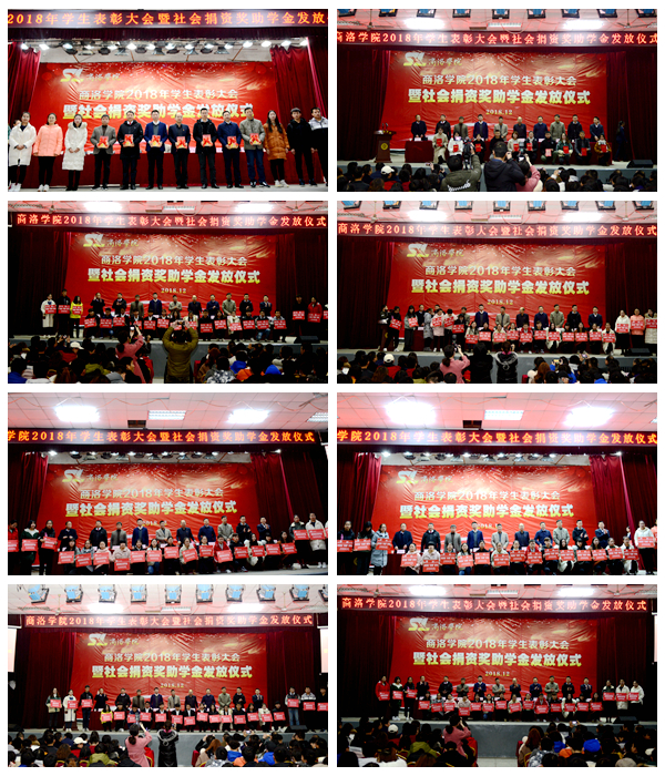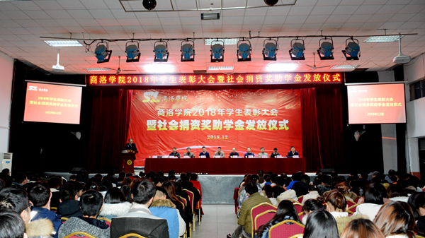 在热烈的掌声中,校领导和主席台嘉宾为受表彰的先进个人和先进集体代表颁奖,并为受奖受助学生分别发放了国家奖学金、国家励志奖学金、国网陕西电力“小桔灯”助学金、商洛邮政“鸿雁爱心”助学金、商洛联通“沃校园”助学金、商洛移动“和莘情”助学金、商洛电信“天翼”助学金、“森弗爱心”奖助学金、广东校友基金会“正德笃行”奖学金,共计发放企业奖(助)学金44万元、国家奖学金20万元、国家励志奖学金311.5万元。受助学生向爱心企业赠送了《笃学·笃志·笃行——受助学生思想集》。