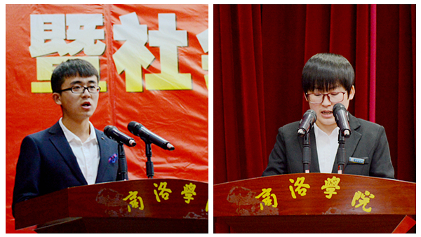 国家奖学金获得者汉语1604班田一汉、“十佳大学生”生科1501班赵盟分别代表受表彰的先进个人和受资助学生作了发言。