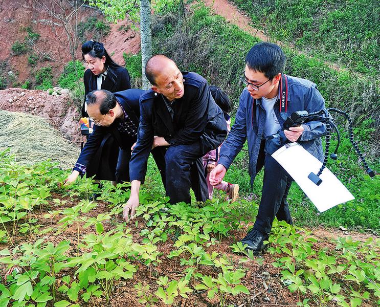 今年4月7日,王洋在商州区芦沟村中药材种植区,调研中药材病虫害发生情况