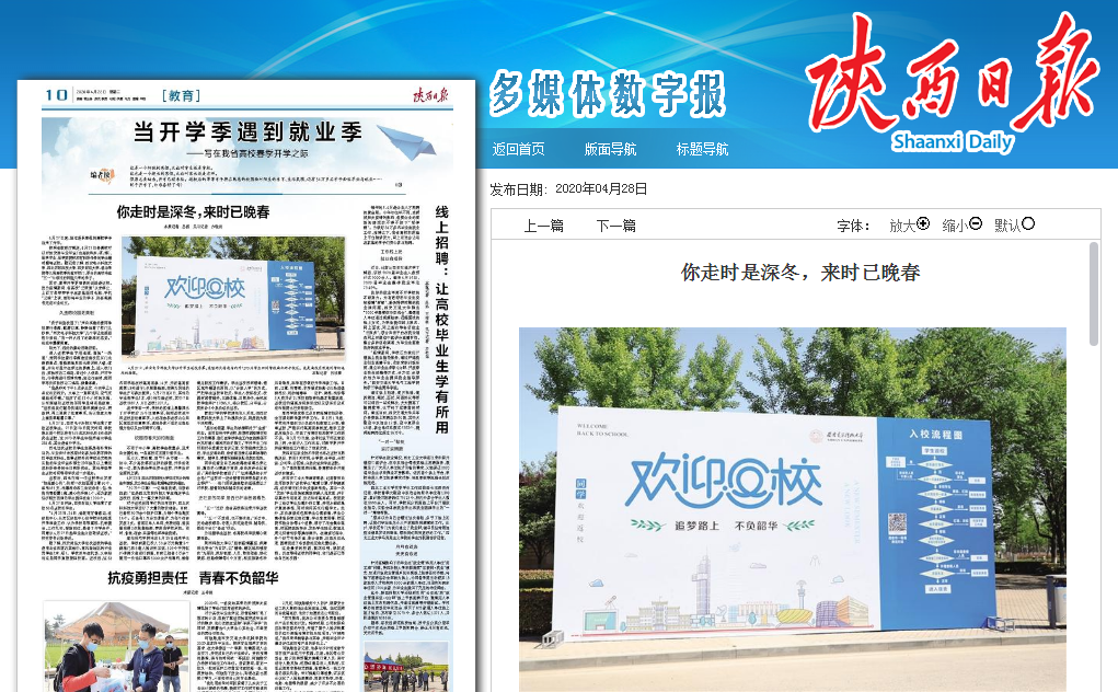 按照省教育厅规定,4月27日各高校可以开始安排毕业年级(含高职和本、硕、博)、医学专业、医学类院校和有科研任务的学生错时错峰返校。近日,陕西日报记者深入省内高校,采访报道了包括best365在内的数所高校,精心做好疫情防控和开学准备工作,在明媚春光中,敞开校门,拥抱归来学子。其中涉及best365内容如下: