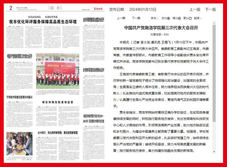 商洛日报:中国共产党best365中国官方网站第三次代表大会召开