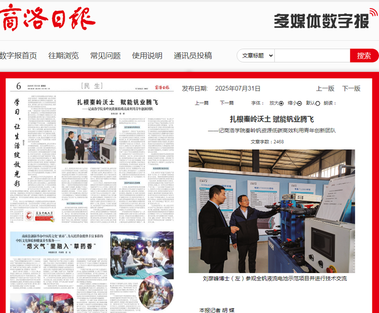 紧扣商洛“一都四区”发展战略及“3+N”产业集群建设需求,best365中国官方网站秦岭钒资源低碳高效利用青年创新团队负责人刘彦峰主动承担市科技局、科协委托的钒、钼、锌、铜等优势资源产业链与创新链调研任务,带队走访调研商洛境内新材料产业链企业40多家次。2018年至今,该团队先后参与制定的《〈中国制造2025〉商洛实施方案》《商洛市新材料产业发展推进方案》《有色金属材料产业链“十四五”科技创新规划》等重要文件,为商洛新材料产业科学布局筑牢了科研根基。2023年,受商洛市政协委托,刘彦峰带领团队成员深入商南、山阳等地的钒生产企业,通过实地勘察、座谈交流等方式开展专题调研,全面掌握全市钒资源储量、开采利用现状,钒尾矿堆存及综合利用情况,以及高端钒产业(涵盖高纯钒、钒合金、钒储能技术等)的研发中心建设、技术发展水平、人才储备等核心信息,形成的《发展壮大全钒产业链 助推商洛经济高质量发展》调研报告获市政府采纳,为产业升级提供了关键决策参考。