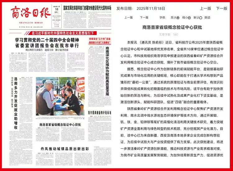 陕西省秦岭矿产资源综合开发利用概念验证中心聚焦矿产资源开发利用、南水北调中线水源地生态环境保护等技术方向,通过开展钼、钒、铁、金、铅锌银等尾矿的高值化清洁利用关键技术研究,着力突破矿产资源全面利用与绿色转型的技术瓶颈,充分挖掘其产业化潜力。目前,该中心已为来自新疆、西安及商洛本地多家企业完成创新构想验证,为后续中试放大与产业投资提供了有力支撑。此次获批建设,将进一步激活秦岭矿产资源创新潜能,推动科技资源与产业需求精准对接,为我市矿业高质量发展聚势赋能,为加快培育新质生产力、促进资源优势转化为产业优势注入强劲动力。