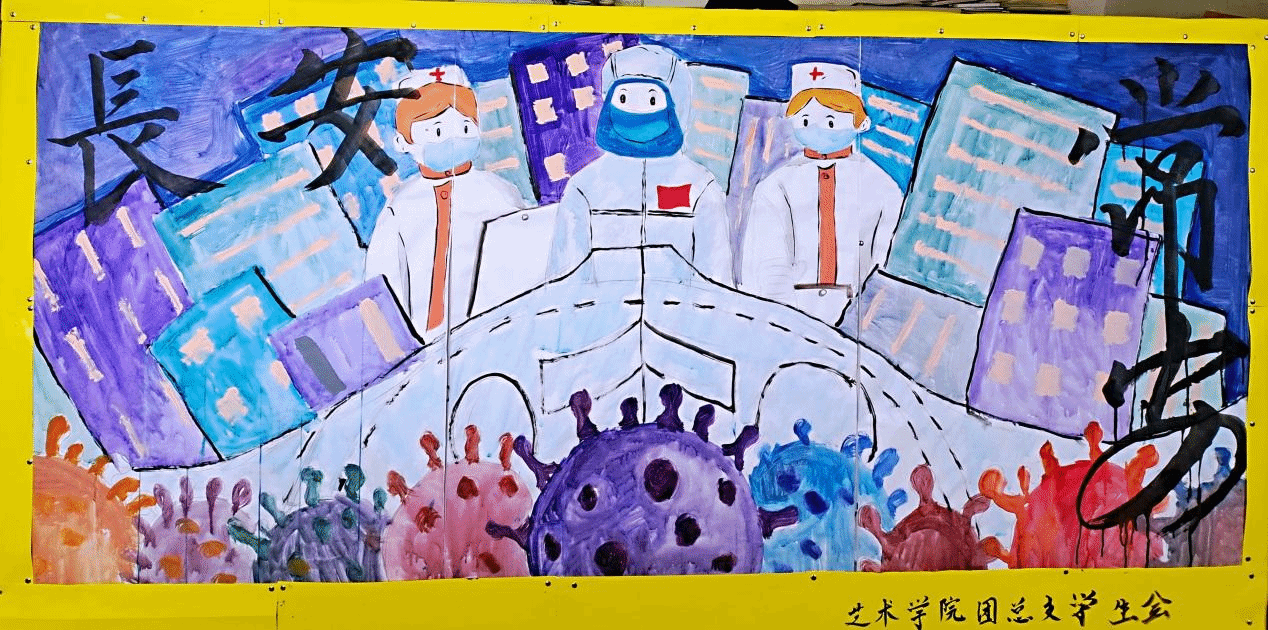 西安疫情暴发以来,校艺术学院团总支积极动员广大团员学生踊跃投身抗击疫情主题文艺创作。学院学生积极响应,创作了以“防疫”为主题的展板,用绘画的方式向白衣天使致敬、为一线英雄礼赞,积极传播正能量,为坚决打赢疫情防控阻击战增添信心与力量。