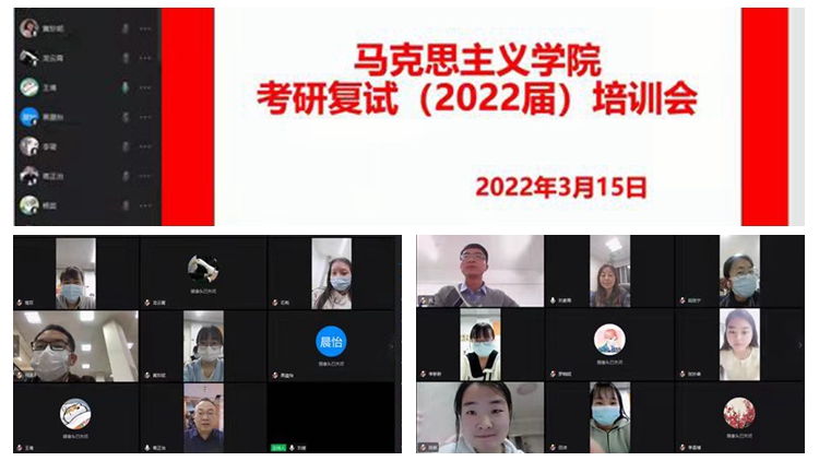 为助力我院考研学子科学高效准备复试工作,让考研学子心中有底气,脸上精气。3月15日晚,马克思主义学院召开线上考研复试培训会,为即将参加考研复试学生提供全方位、多角度指导。马克思主义学院院长蒋正治、党总支书记刘麦霞、副院长武永耿、学工办主任李燕燕,青年教师刘健、王倩、叶肖,2021届毕业生(现就读于兰州理工大学)王宇杰和本次上线的23名学生参加了会议。会议由武永耿主持。