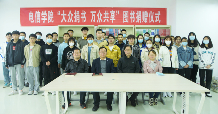 3月30日下午,电信学院在丹江校区3-606室举行“大众捐书 万众共享”图书捐赠仪式。图书馆馆长张国春及电信学院师生代表30余人参加仪式,仪式由电信学院院长袁训锋主持。