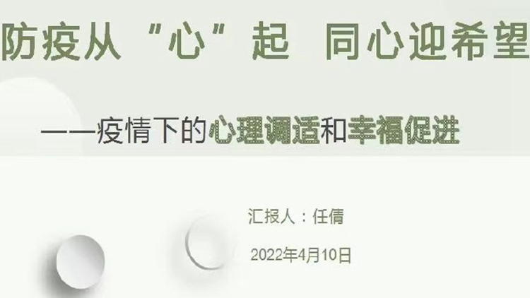 为舒缓疫情防控期间在校生焦虑情绪,助力做好心理调适和学习生活规划,4月10日,经管学院辅导员、国家三级心理咨询师任倩通过钉钉平台为学院师生举办了以“防疫从心起 同心迎希望 ——疫情下的心理调适和幸福促进”为主题的线上主题讲座。