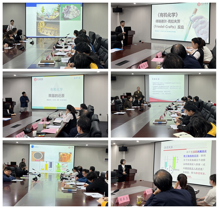 比赛中,无机教研室元春梅、循环教研室阎赞、有机教研室王以寿、汪小钢、材料教研室李晓龙和应化教研室郝东艳6位教师进行了精彩的教学技能展示和教学经验交流。高胜利在点评中指出,学院要进一步注重顶层设计,加强制度建设。广大教师要注重深化课程,加强典型案例发掘;注重以赛促建,加强教赛融合。希望各位教师担负好育人责任,做好“筑梦人”和“引路人”,成为理想之师、品行之师、学问之师。在课程思政建设道路上持续行动、成为行家,要充分发挥各教研室课程思政建设的排头兵作用,持续深入推动落实立德树人根本任务。
