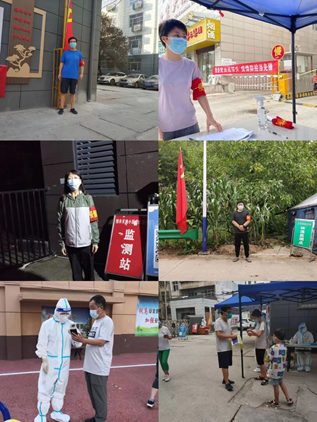 我院彭永鑫老师、杨全老师住在南院家属区,主动承担南院的核酸检测志愿服务工作,杨全老师还动员自己大学暑假在家的儿子一起参加核酸检测志愿服务。刘晓民、李永华、张洁老师分别在自己的小区承担起巡逻、信息登记、核酸检测、值班值守等工作。辅导员韩威,身在老家洛南,也积极投身村里的疫情防控工作,协助所在村委会工作人员进行入户核酸采样,并主动承担卡点值班任务。