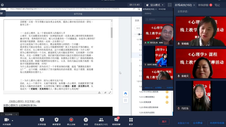 课后,全体教师围绕“互联网+对分课堂”教学改革进行了线上研讨。纷纷表示,《心理学》课程的“互联网+对分课堂”教学改革探索和实践能够充分利用超星学习通平台的各模块功能,推动教师转变教学理念,有效调动学生积极性,帮助学生和教师一同成长为提升教学质量和实施教学改革创新的学习共同体。