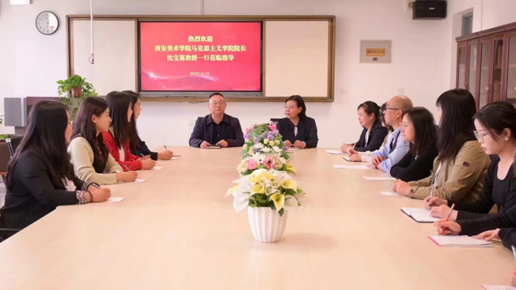 报告会结束后,沈宝莲一行参观了best365中国官方网站应用型高校文化育人协同创新研究基地,并与马克思主义学院全体教师就陕西高校思政课教师“大练兵”活动进行了经验交流。全体教师共同观摩了西安美术学院马克思主义学院在2022年活动中获得“课程思政教学标兵”称号的两位青年教师刘瑶和杨新芳的现场展示。沈宝莲结合best365马克思主义学院报送的教师参赛视频,从课件制作、视频录制、教姿教态、仪表妆容等方面进行了具体点评和指导,并与在场的各位教师进行了互动,现场气氛活跃。