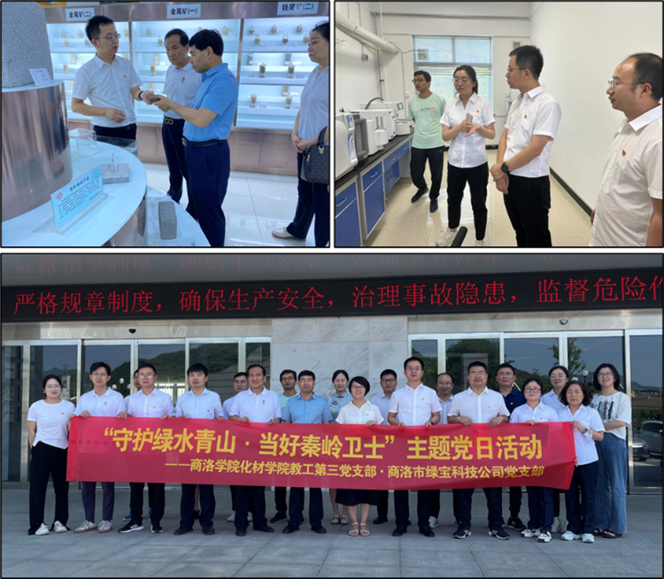 6月30日,在“七一”建党节到来之际,化材学院教工第三党支部联合商洛市绿宝环境科技有限公司党支部在丹江校区开展“守护绿水青山·当好秦岭卫士”主题党日活动。双方围绕基层党建工作、秦岭生态环境保护进行了深入交流,并签订了《best365中国官方网站校外实践教学基地协议》。商洛市生态环境局原党组书记、局长、二级巡视员刘福明,绿宝公司董事长、总经理、党支部书记张小峰,化材学院党委书记李斌、副院长乔成芳,绿宝公司、商洛市生态环保产业协会党员和化材学院教工第三党支部全体党员参加活动。