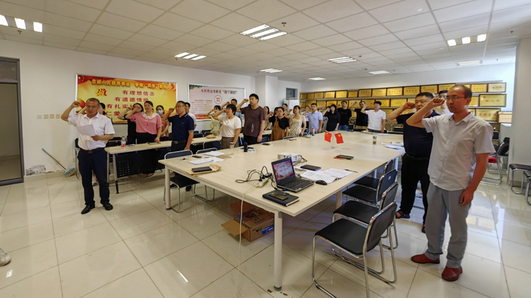 面对着鲜红的党旗,全体党员举起右臂,铿锵有力地进行宣誓——“我志愿加入中国共产党,拥护党的纲领,遵守党的章程,履行党员义务……”,通过宣誓仪式,党员们又一次重温了入党时立下的铮铮誓言,心中澎湃万千,纷纷表示要永远忠诚于党,努力学习,认真工作,永远跟党走,将毕生年华奉献于党。