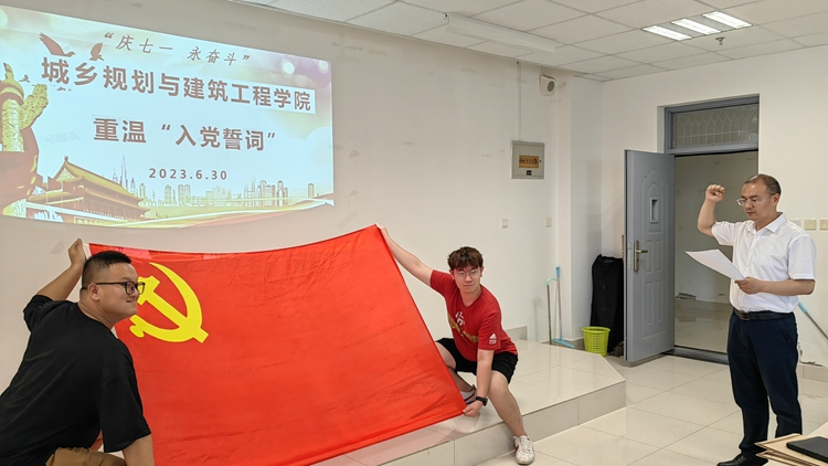 筚路蓝缕创伟业,不忘初心再启航。为热烈庆祝中国共产党建党102周年,推动学习贯彻习近平新时代中国特色社会主义思想主题教育走深走实,“七一”前夕,城乡规划与建筑工程学院党委举行“重温入党誓词”“学党章”“领导班子讲党课”“开展主题党日活动”“我为党的生日送祝福”等系列庆“七一”活动。