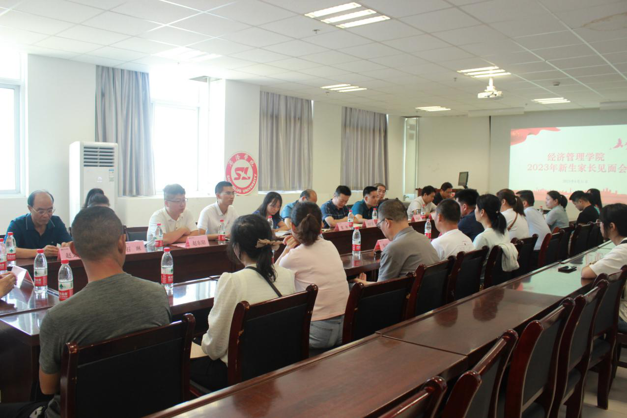 8月31日上午,经济管理学院组织召开了2023年新生家长见面会。经济管理学院党政领导、各系主任、全体辅导员及20多名新生家长代表参加会议。会议由高扩昌主持。经管学院院长张林致欢迎词,并介绍了学院的发展历史、学院概况、师资建设、专业建设等相关情况。贾长安对学院学生管理及学生学科竞赛简况进行了介绍。副院长雷清介绍了学院教学组织情况以及师生在教育教学以及学科竞赛等领域所取得的突出成绩。系主任赵子越、任鑫博和刘龙龙依次介绍了各专业课程设置,学科竞赛,实验室建设,就业方向等情况。参会家长充分肯定了学院学生管理模式与教育教学管理体系,并参观了学院相关实验室。高扩昌做了总结发言,他希望从学生管理与行为习惯养成,从教育教学与专业实践,争取家长的理解与支持,进一步做好家校共育工作。