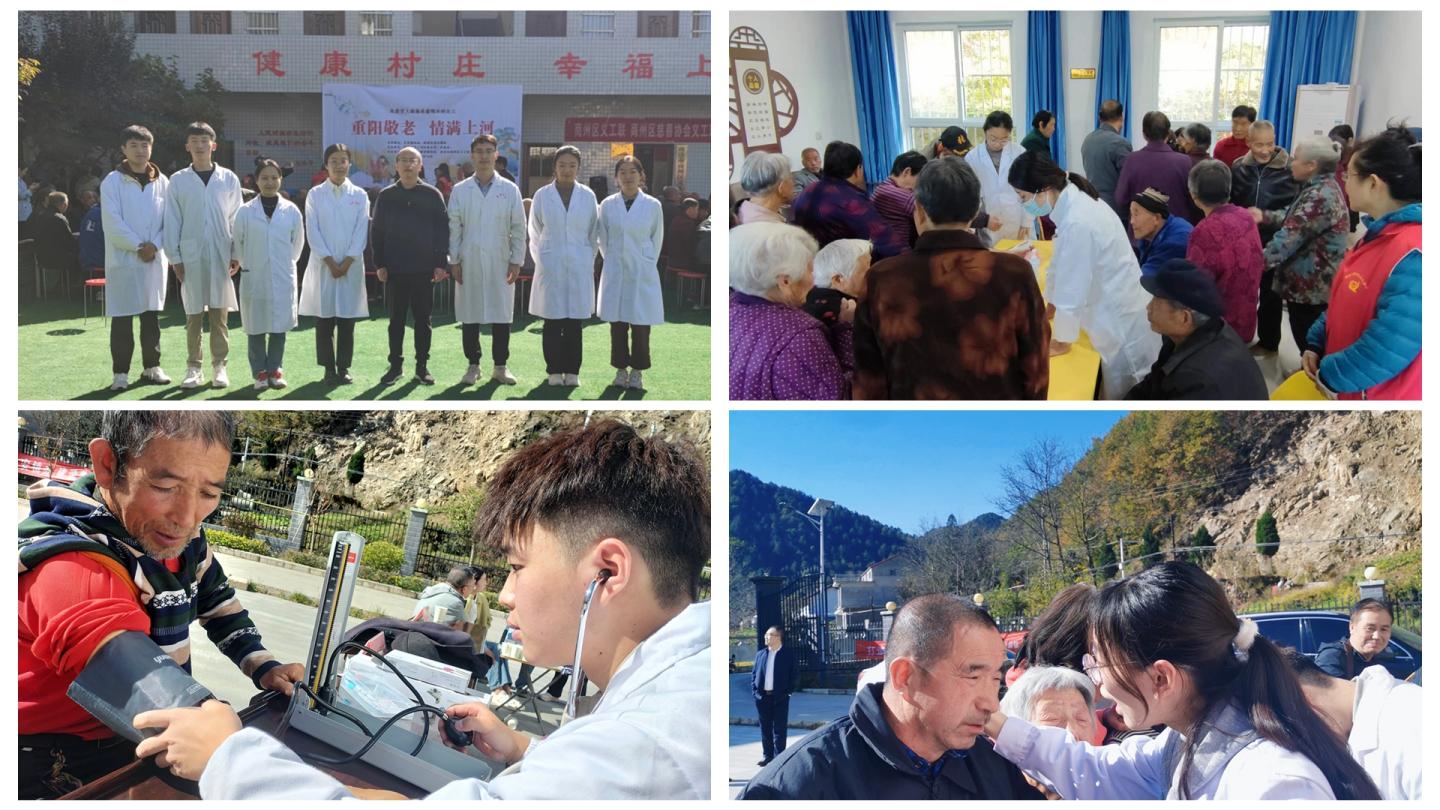 学院党委书记王攀、副院长张晓文分别代表学院师生向两个村庄的老人们致以亲切的节日问候和良好祝愿。随后,由志愿者们进行义诊活动,提供血压血糖测量、康复理疗、中医耳穴压豆、骨密度检测等各项服务项目,同时普及健康知识,为老年人提供心理咨询服务,提升老年人健康素养,推动改善老年人心理健康状况。据统计,活动受益群众达200余人,师生专业细致的服务,周到通俗的讲解,受到了村民的广泛好评。