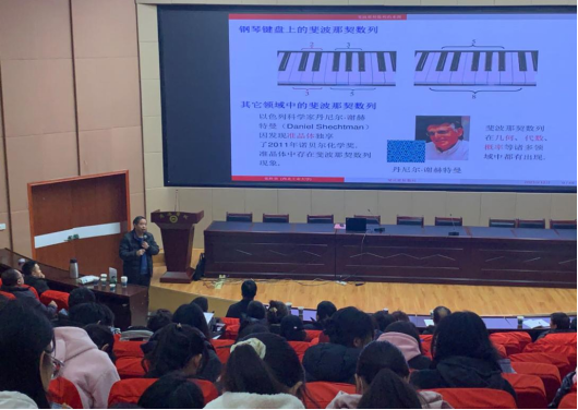 张胜贵教授以《斐波那契数列》为题,从数列的来源、与黄金分割的关系和应用等方面,完整、详细地介绍了斐波那契数列。整场报告深入浅出,与会师生共同体验斐波那契数列的美与价值。