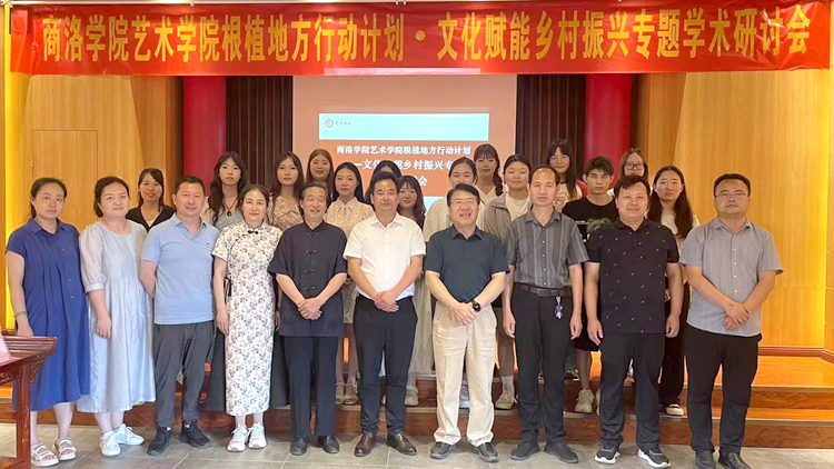 在同日召开的“根植地方行动计划·文化赋能乡村振兴”专题学术研讨会上,洛南县文学艺术界联合会主席李琳,洛南县美术家协会主席李志全,陕西山水画研究会商洛分会主席陈涛,花溪弄景区董事长黄义钊,商洛市女书画家协会副主席张清玲,艺术学院副院长唐曌堃及美术系教师围绕“文化赋能乡村振兴”,从洛南县地方历史文化艺术的挖掘、如何利用网络新媒体工具宣传洛南及花溪弄艺术特色、洛南县地方非遗文化艺术与高校教学科研成果相结合等方面开展了研讨交流。