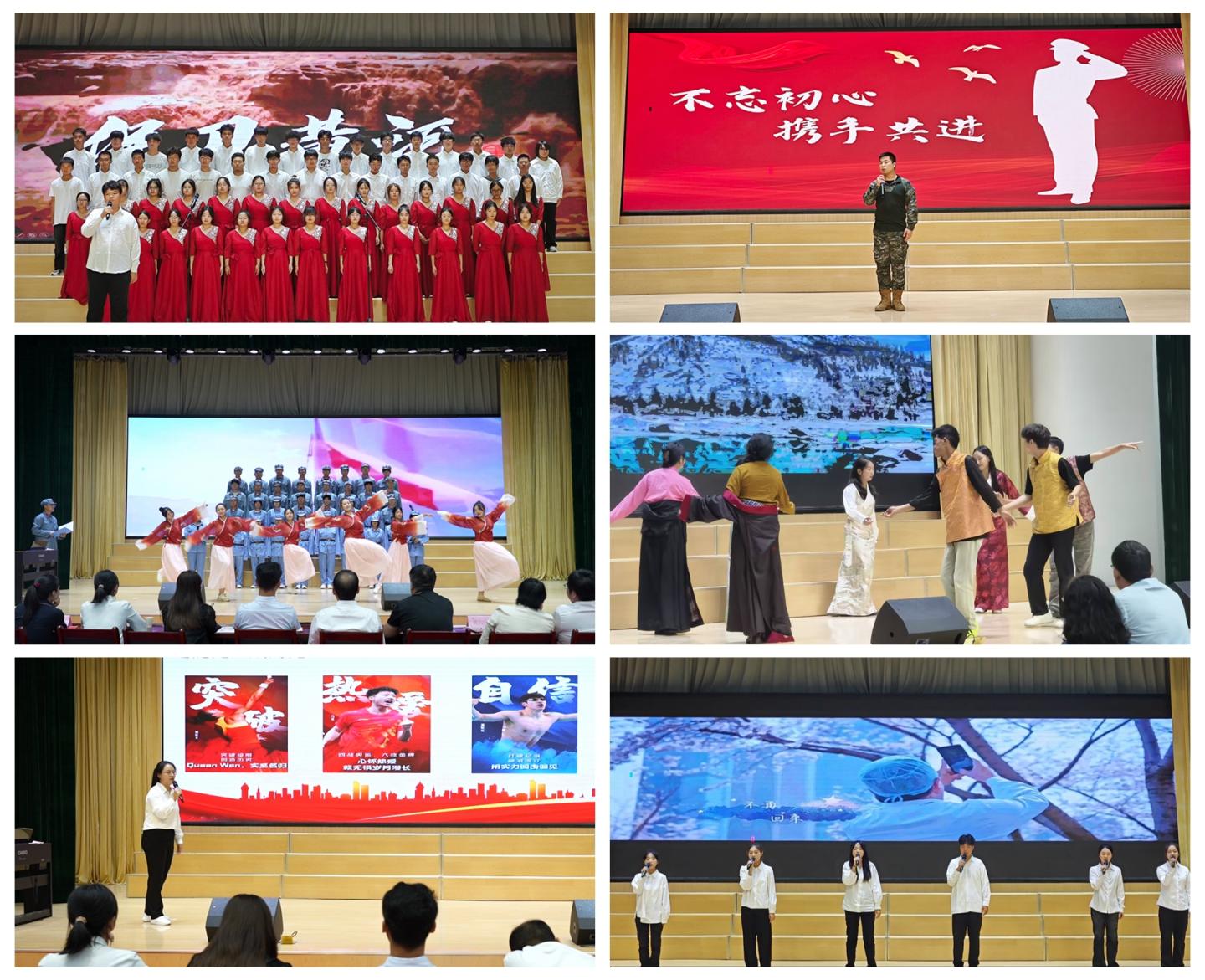 在“诵一段经典”环节中,同学们以朗诵和舞蹈的形式,满含深情地演绎毛泽东等伟人的经典诗篇,感受一代伟人的澎湃激情、才情和豪情,并以此表达大家对伟大领袖毛泽东的崇敬与怀念之情。灵动优美的《民族舞蹈串烧》编织出一幅绚丽多彩的民族文化画卷,让在场的师生沉浸在艺术盛宴中,感受各民族文化的独特风情和深厚底蕴。