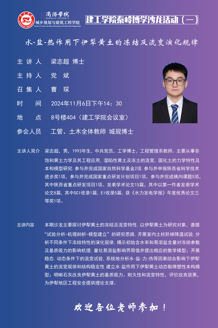 为促进学术争鸣,活跃学术氛围,11月6日下午,城乡规划与建筑工程学院举办了首场“秦岭博学沙龙”学术活动。工程管理系,土木工程系全体教师,城乡规划系博士,商洛职业技术学院两位教师参与活动。