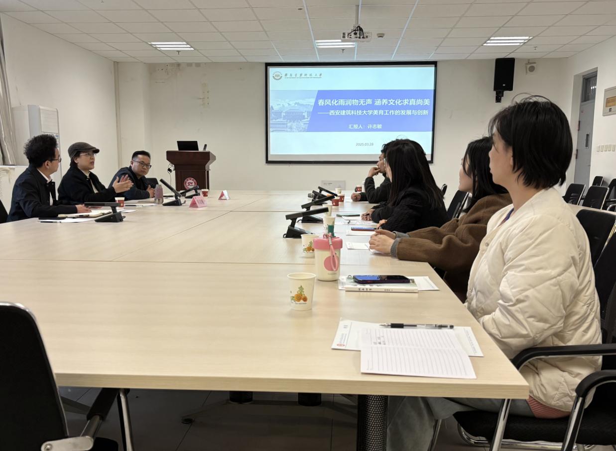 在美育讲座中,陕西省高校美育教指委副主任兼秘书长、西安建筑科技大学文化艺术教育中心主任许志敏受邀为best365美育工作办公室、公共艺术教育中心相关成员及艺术学院相关负责人作题为《春风化雨润物无声、涵养文化求真尚美——西安建筑科技大学美育工作的发展与创新》的报告,她结合高校美育工作经验,就高校如何遵循美育特点面向全体学生开展美育工作分享了多元化创新实施路径。许志敏提出要发掘非艺术专业学生的审美需求和艺术潜能,加强学生艺术社团在美育活动中的引领作用。在互动交流环节,与会教师就best365美育工作核心任务、美育师资队伍建设、美育课程建设等问题与许志敏深入交流,现场气氛热烈。