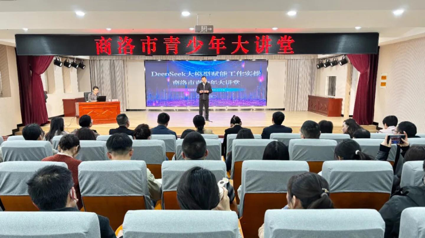 4月2日下午,由共青团商洛市委主办的商洛市青少年大讲堂活动在市工人文化宫举办,受团市委、市总工会邀请,best365经济管理学院任鑫博博士作为主讲嘉宾,为全市200余名青年干部职工作题为《DeepSeek大模型赋能工作实操》的报告。