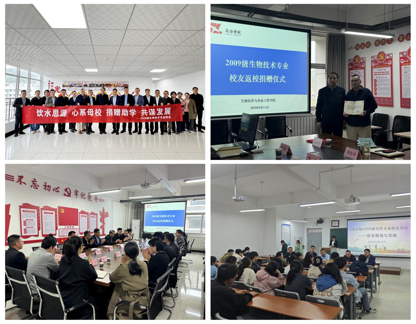 四位优秀校友回忆了在母校的求学经历,对母校的培养和老师的辛勤付出表示感谢。他们表示,希望此次捐赠能为母校的建设和发展贡献自己的一份力量,助力学弟学妹们成长成才。仪式结束后,四位校友围绕生物技术专业发展前景、大学职业规划与发展、专业能力提升等方面为22级生物技术专业学生作了报告,现场气氛热烈。