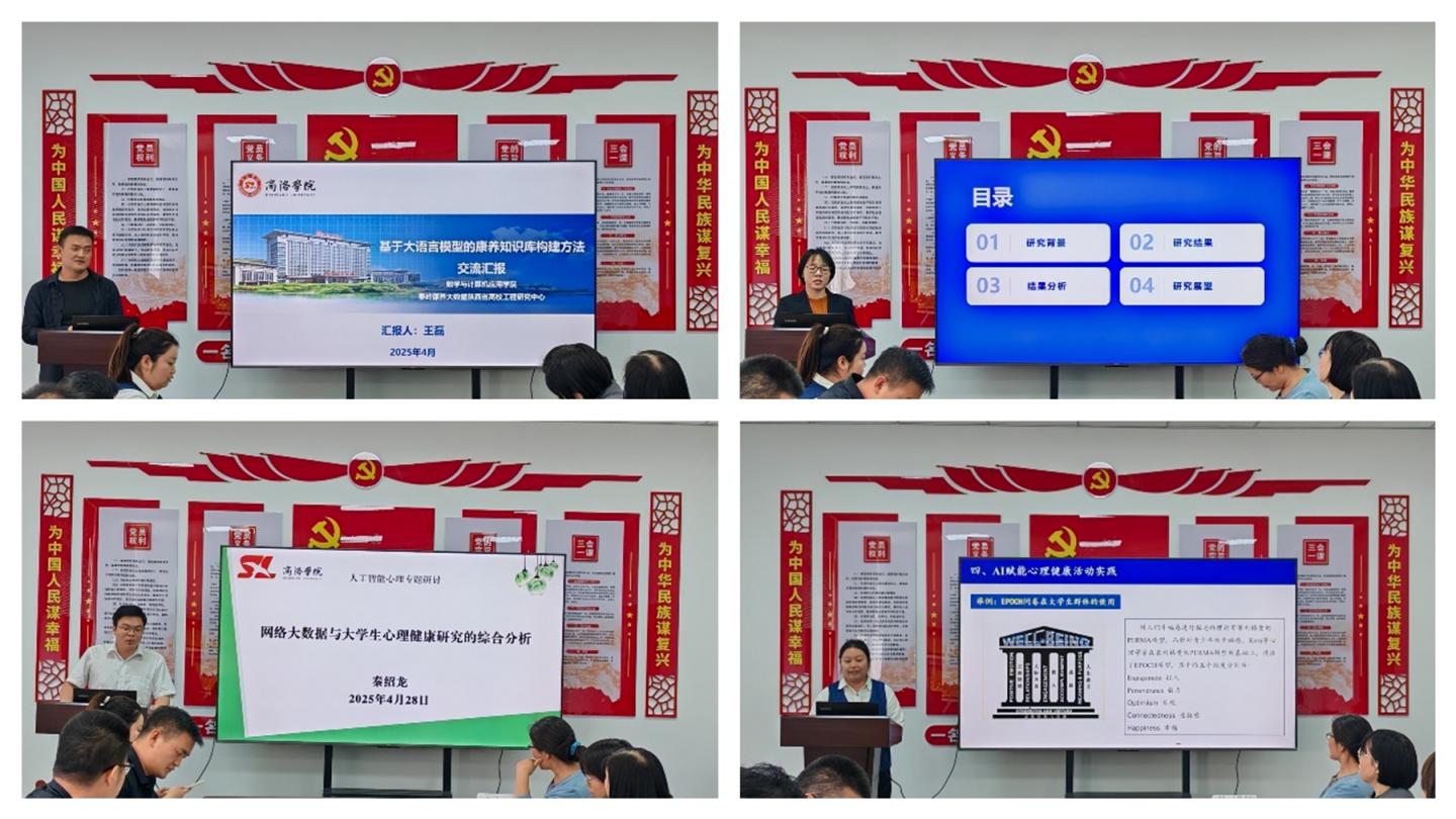 王磊以《基于大语言模型的康养知识库构建方法》为题,结合人工智能技术发展趋势,详细阐述了如何利用大语言模型整合康养领域专业知识,构建智能化、个性化的知识服务体系。李盼盼以《亲子沟通对青少年自伤行为的影响机制》为题,结合实证数据分析揭示家庭互动模式对青少年心理危机的深层影响,提出针对性干预建议。秦绍龙以《网络大数据与大学生心理健康研究的综合分析》为题探讨了如何运用数据挖掘技术解析大学生心理状态特征,为精准心理服务提供科学依据。贺瑾瑾以《AI赋能心理健康探究》为题系统梳理了人工智能在心理评估、危机预警及干预中的应用场景,展望了“AI+心理”的未来发展方向。